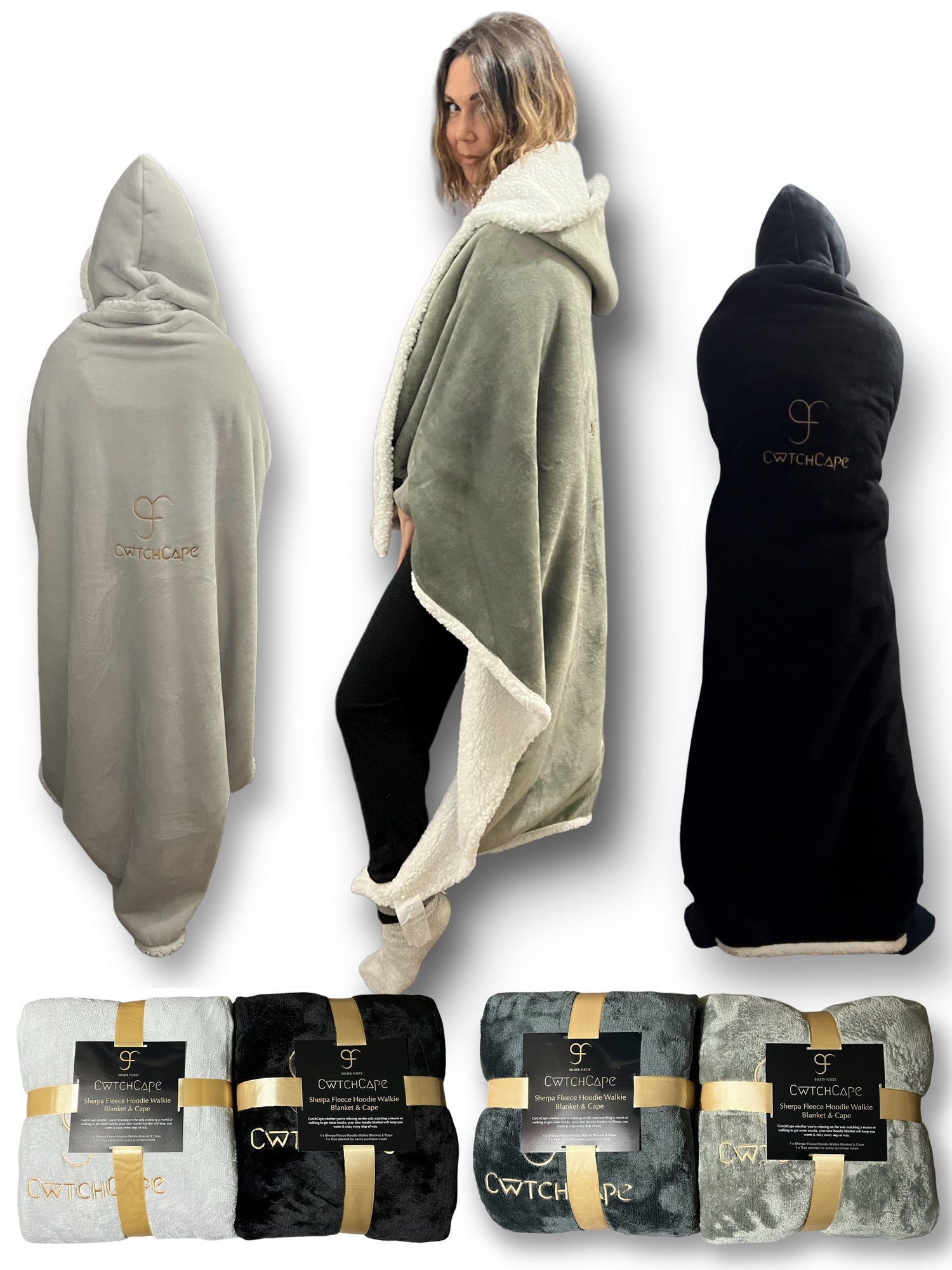 CwtchCape Sherpa fleece hoodie walkie blanket Adult 1 size fits all.