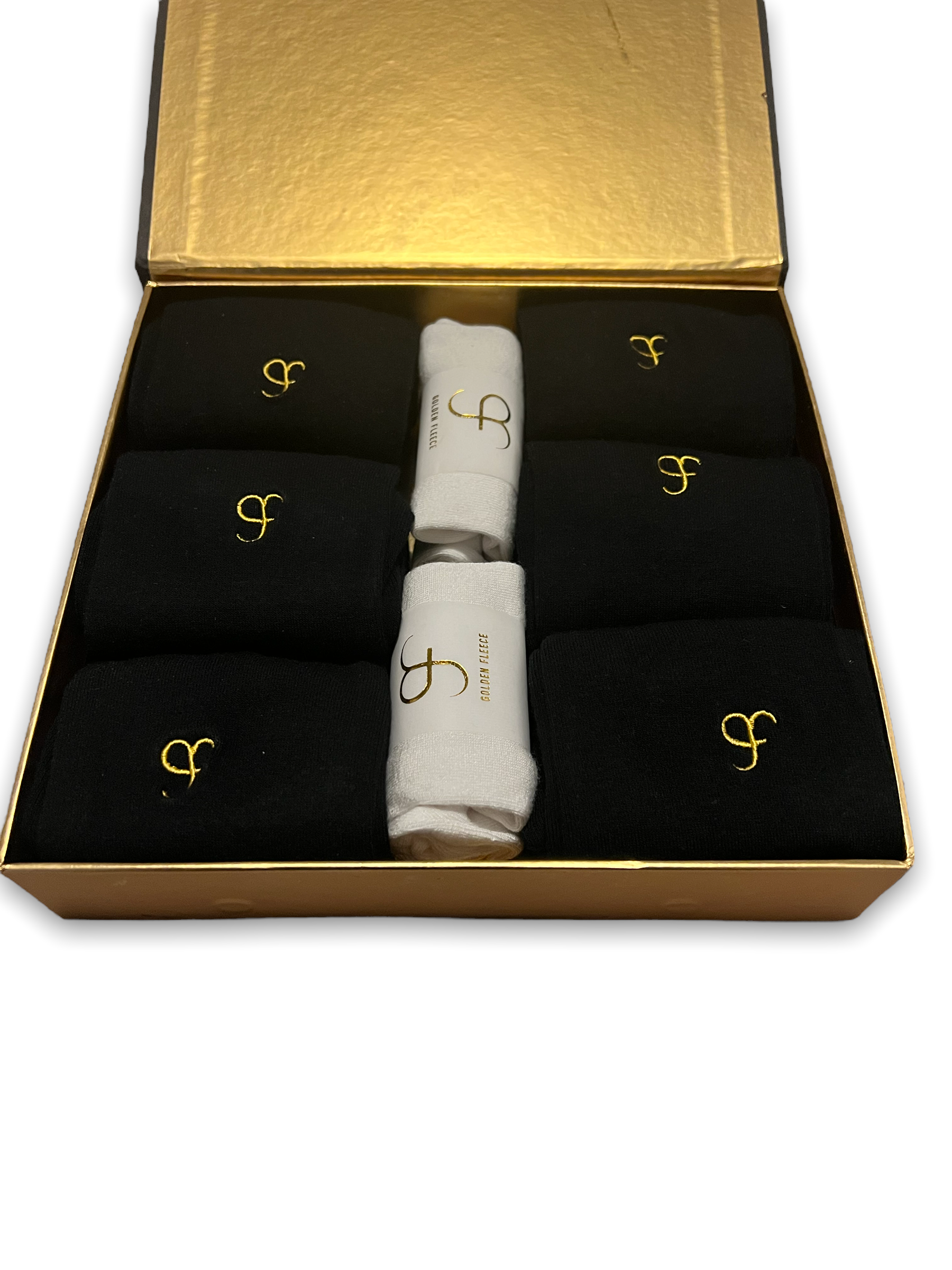 XXL Size Luxury Bamboo T-Shirt & Bamboo Socks Gift Box Set for Men & Women in a Handcrafted Magnetic Close Keepsake Box Black