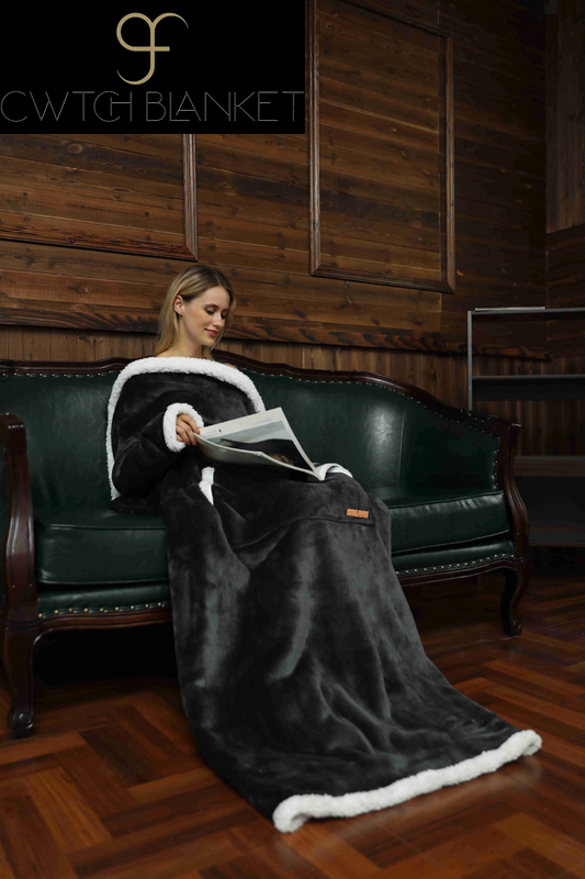 CwtchBlanket Giant 200cm x 170cm Extra Thick Sherpa Fleece TV / Reading Blanket